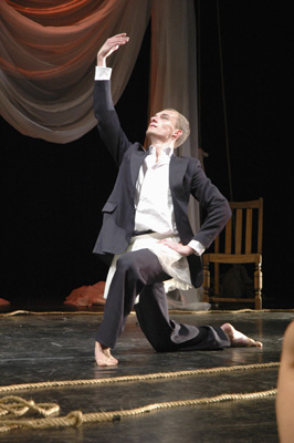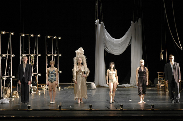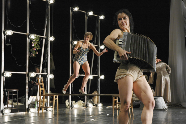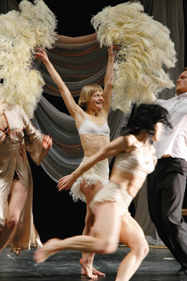 Against a backdrop of decaying theatrical grandeur, Punch Drunk finds six extraordinary performers moving like ghosts through a disused theatre. Slipping in and out of half-remembered acts, they piece together the tatters of a show long since past its prime. Emotionally raw and darkly humorous, Punch Drunk is an enthralling journey into the world of vaudeville and burlesque. Created in 2004 in celebration of Vincent Dance Theatre’s tenth anniversary.